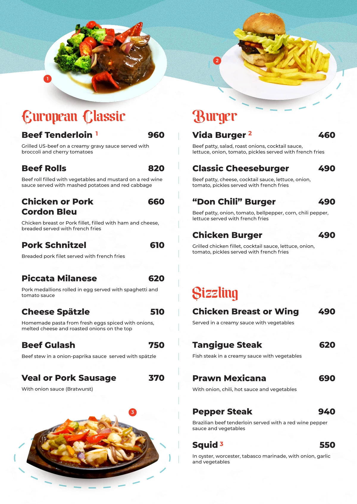 We serve a tempting variety of seafood and meat sizzlings, each brought to your table steaming hot and full of flavor.