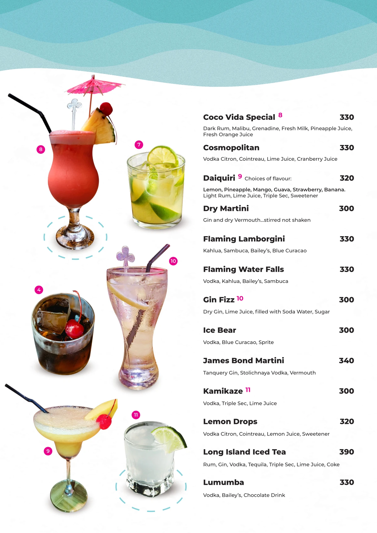 Discover our handcrafted cocktails – shaken, stirred, and poured with island spirit for the perfect sunset moment.